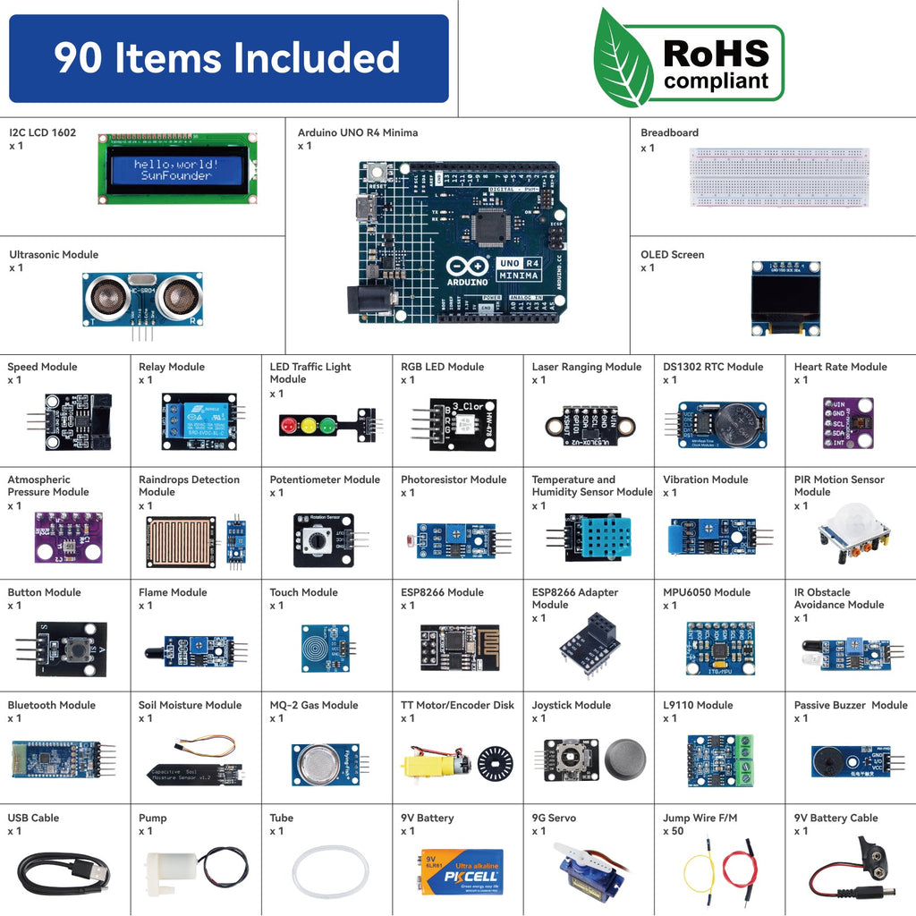 SunFounder Ultimate Sensor Kit with Original Arduino Uno R4 Minima, RoHS Compliant, Durable Sensors IoT ESP8266 IIC LCD1602 OLED, Online Tutorials & Video Courses for Beginners & Engineers