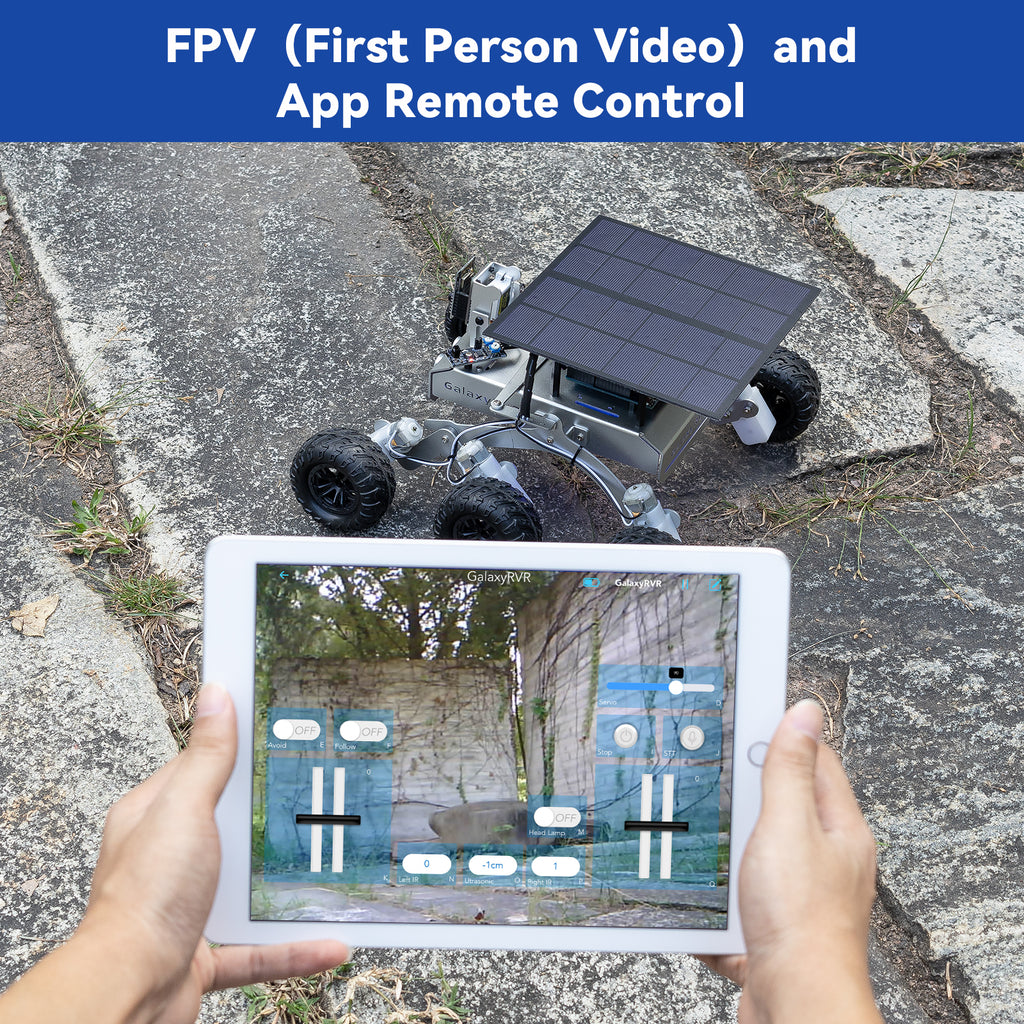 • About GalaxyRVR: Explore Beyond Boundaries Discover the thrill of Mars exploration with GalaxyRVR. Built with a durable aluminum alloy frame and a unique rocker-bogie system, this rover effortlessly tackles diverse terrains. Solar-powered and equipped with an ESP32 CAM for real-time FPV visuals, GalaxyRVR combines sustainability with immersive exploration. Intelligent sensors ensure smooth navigation around obstacles. Whether you're a tech lover or a curious explorer, GalaxyRVR offers a Martian adventure right here on Earth. Dive in and journey beyond the ordinary.