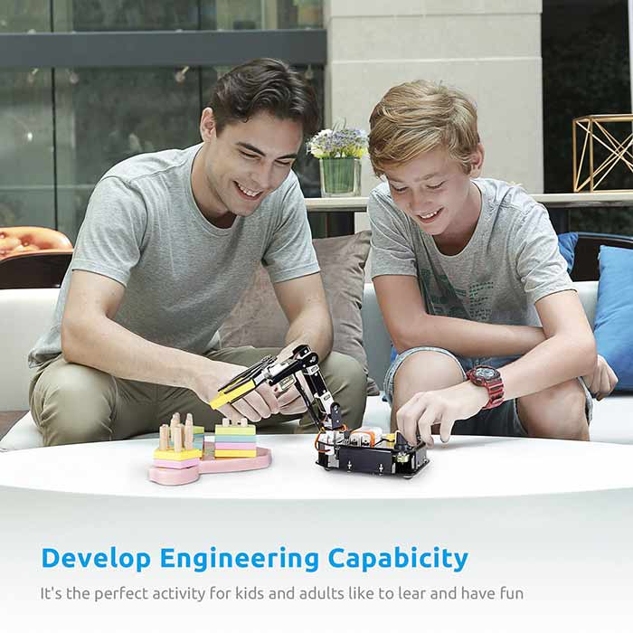• Easy to Build: Our Arm robot kit packages with 101 pieces and a detail PDF instruction which is easy for kids to build them together.