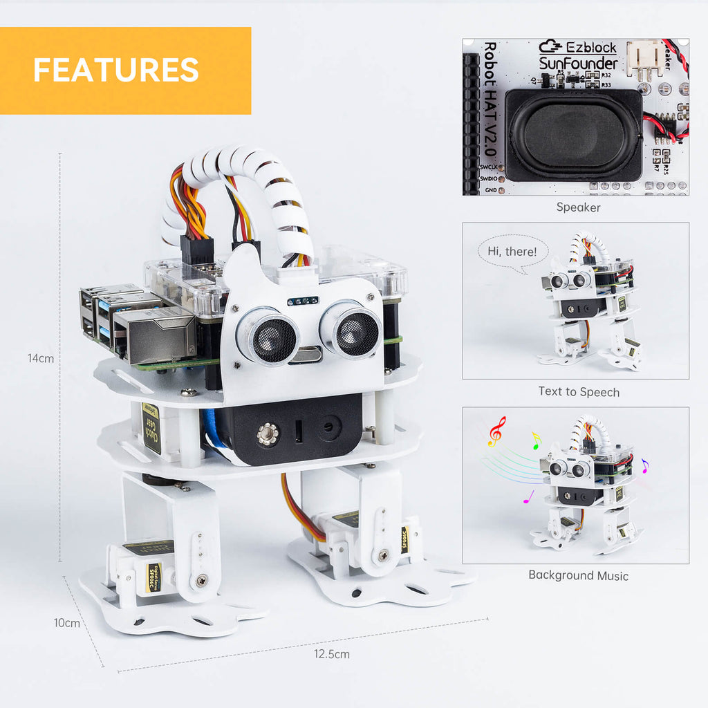• Beginners can program the robotics kit through Ezblock- SunFounders easy-to-use graphical interface, and more experienced makers can use the more traditional Python programming language.
