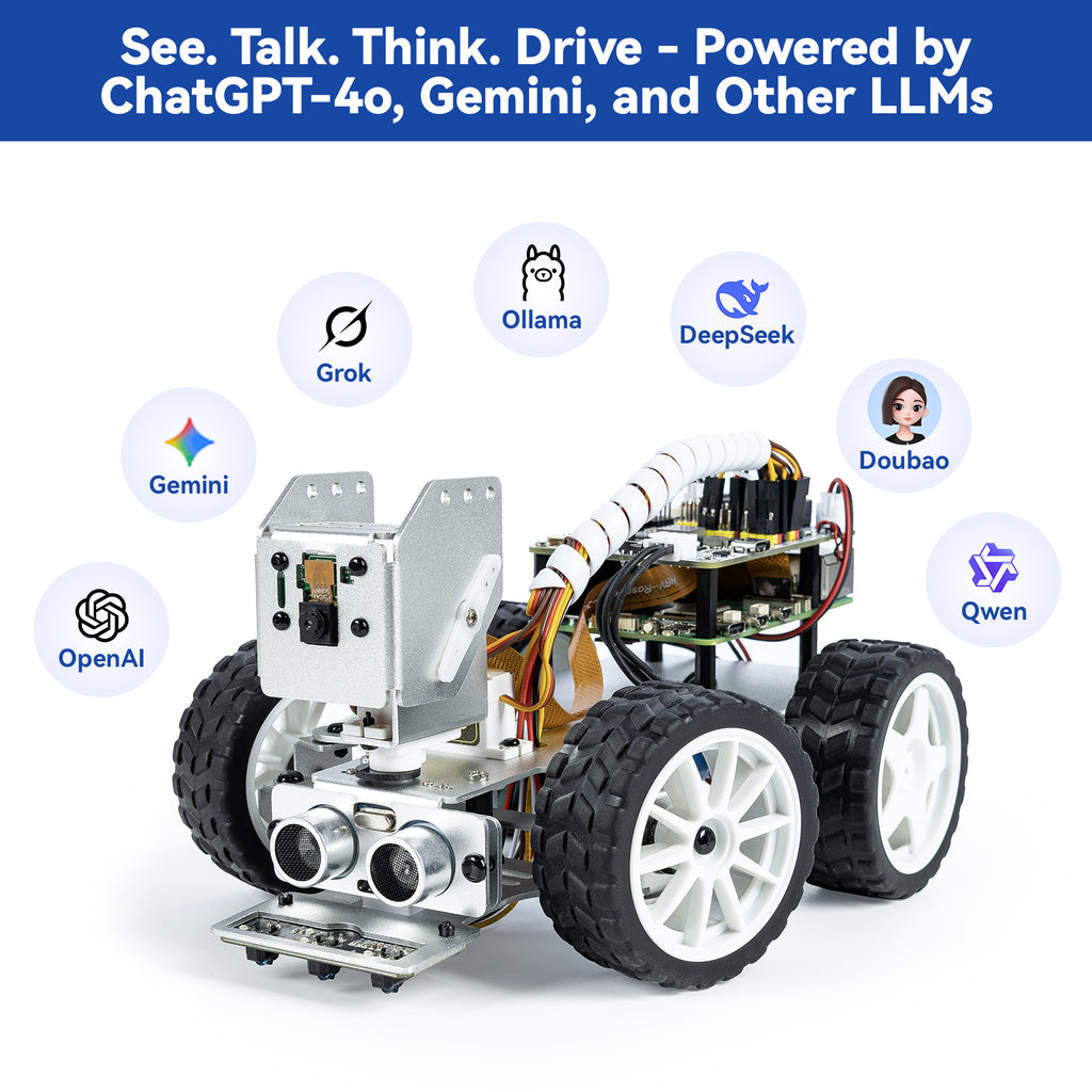 SunFounder Picar-X AI Video Robot Car Kit for Raspberry Pi 5/4/3B+/Zero 2w, LLMs ChatGPT-4o/Gemini/Grok, Voice&Video Recognition, Python, Scratch, Camera, Batterry (RPI NOT Included)