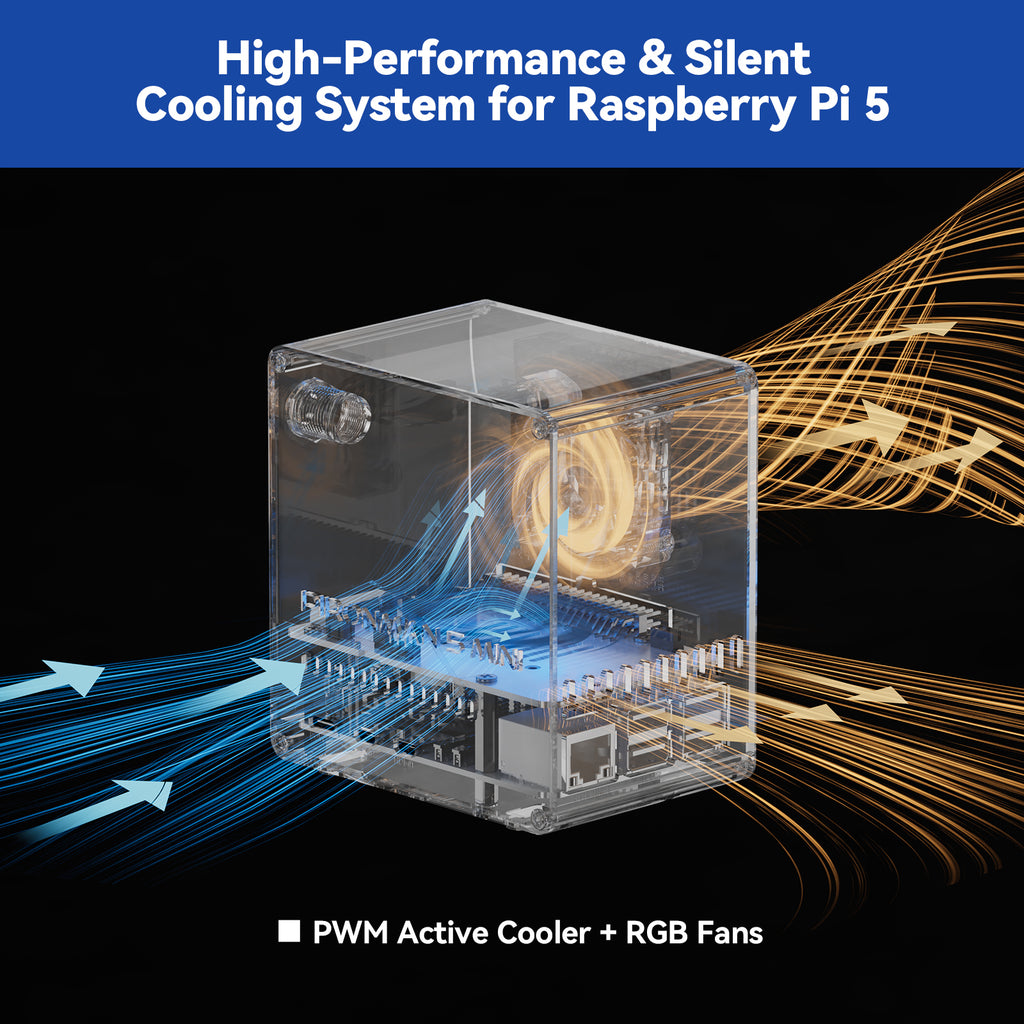 Pironman 5-Mini NVMe M.2 SSD PCIe 2.0/3.0 Mini PC Case for Raspberry Pi 5 2/4/8/16GB Hailo-8L AI Accelerator with PWM Active Cooler+RGB Fan, Safe Shutdown, RGB Effect (RPI5 Not Included)