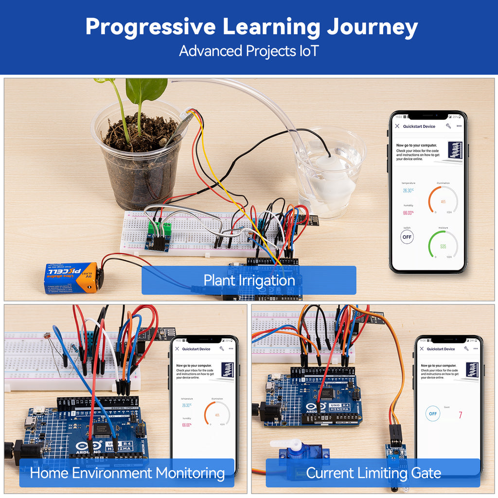 SunFounder 3-in-1 Super Starter Kit with Original Arduino Uno R4 Minima, IoT&Smart Car Projects, ESP8266 WiFi, Battery, 50+ Step-by-Step Tutorials for Beginners to Engineers, RoHS Compliant