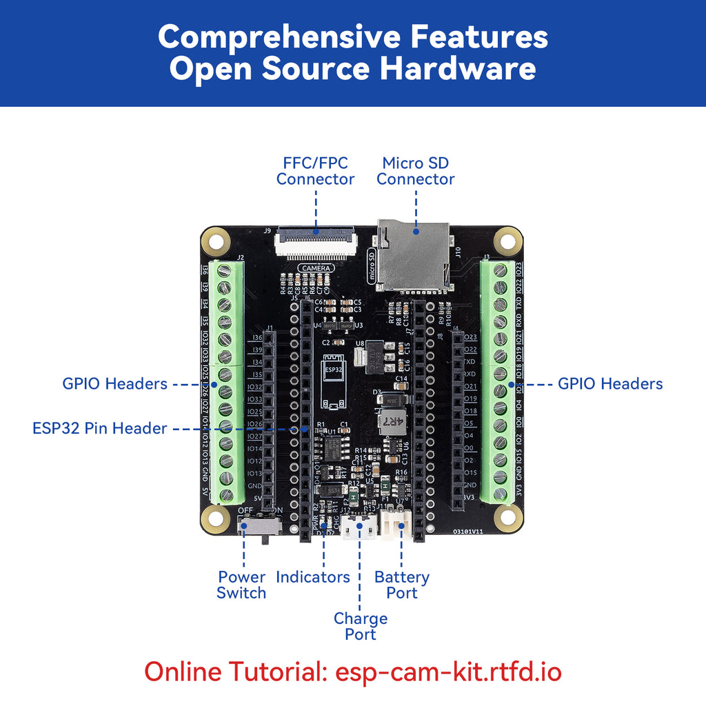 The Detailed Online Tutorials can be found here: esp32-camera-pro-kit.rtfd.io