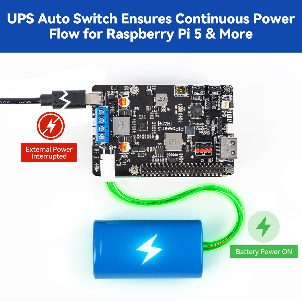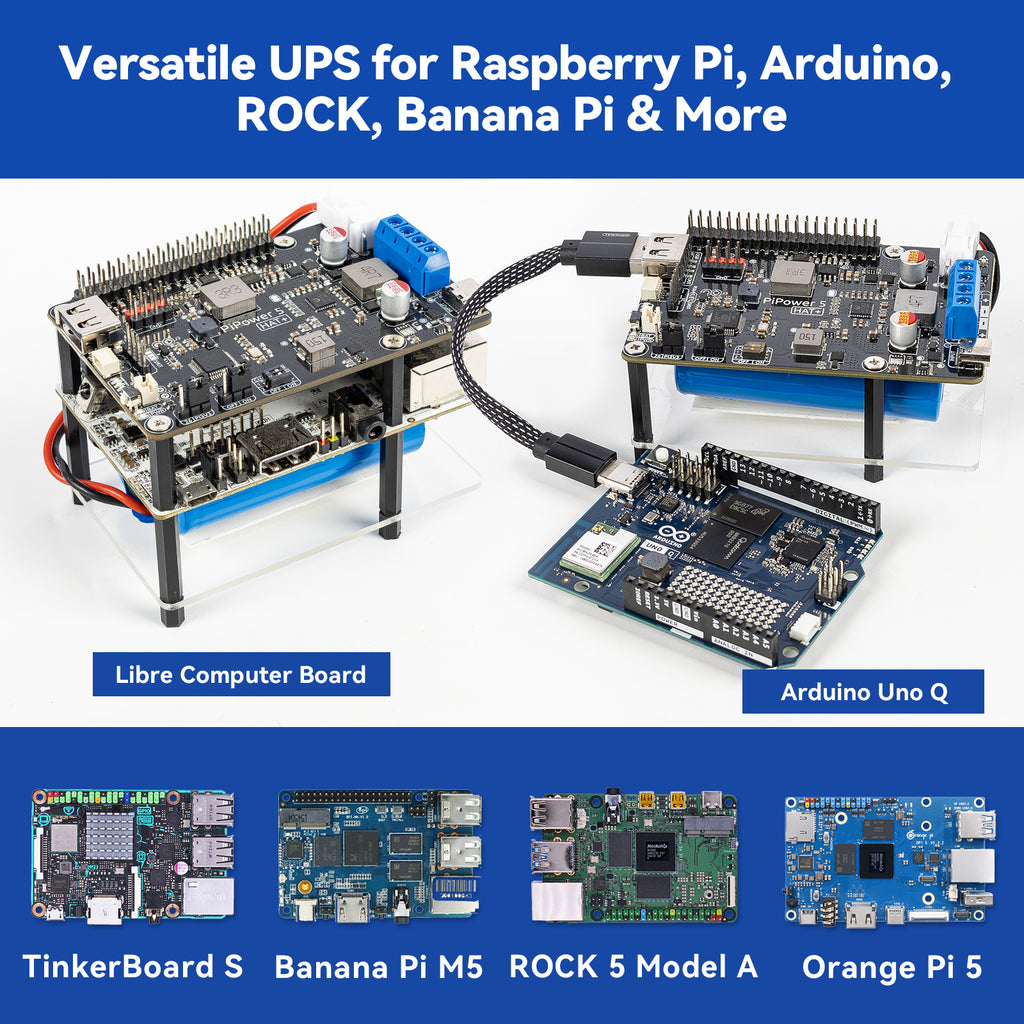 SunFounder PiPower 5 5V/5A UPS HAT Power Supply for Raspberry Pi 5/4B/3B+/Zero 2 W/Arduino/Pironman 5/Max/Mini, Rechargeable Battery, Safe Shutdown, Smart Dashboard