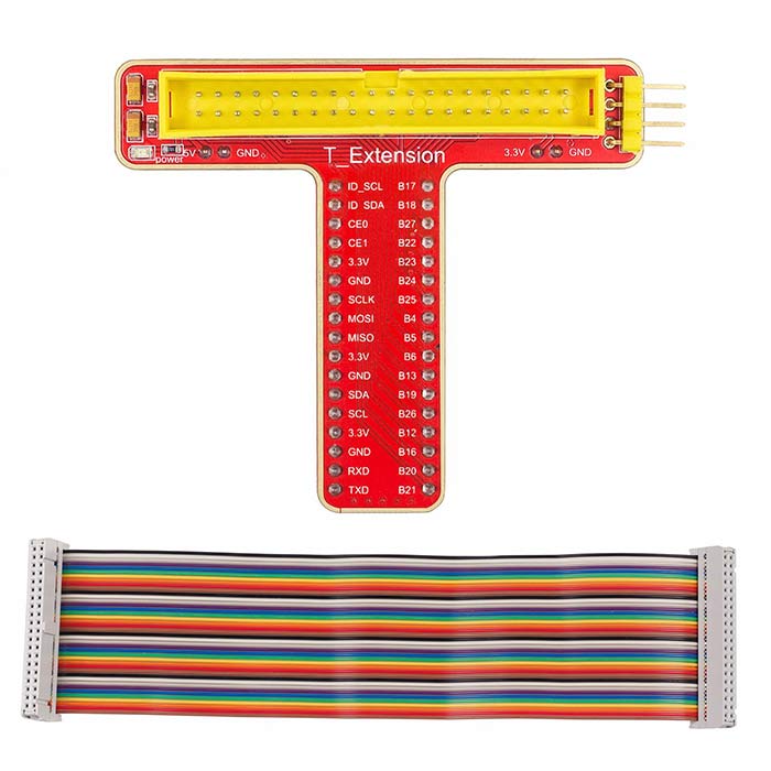 T-Shape GPIO Extension Board with 40-pin Ribbon Cable for Raspberry Pi 5/4/3B+/3B